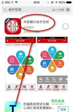 在手机上下载【中信银行动卡空间】并安装。
