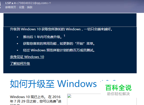 首先,看看你的电脑用户绑定的邮箱里有没有微软推送的 升级消息,如果有,就直接打开链接即可跳转下载;如果没有,就去 官网找到WIN10安装包(3GB左右),下载;