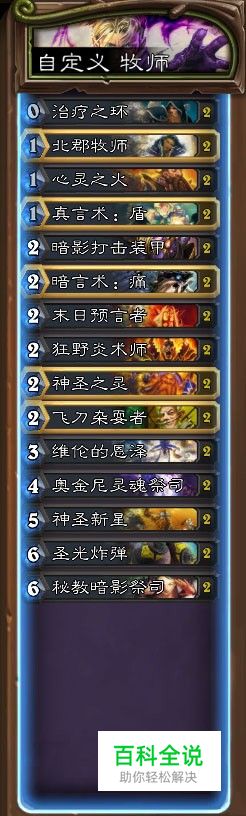 我选了牧师来打,卡组如下: 组牌思路: 1、[炎术师],对方1、2血随从多,用[炎术师]配合法术清场。 2、利用[飞刀]、[暗影打击装甲]、[末日预言师]和AOE等来清除BOSS的场上随从。