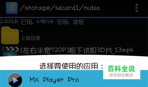 在文件管理器中用MX Player Pro打开下载好的3D片源