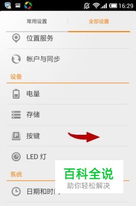 点击首页设置,进入全部设置标签,下拉至设备选项框,可以看到“按键”按钮,选择按键按钮,进入按键页面。