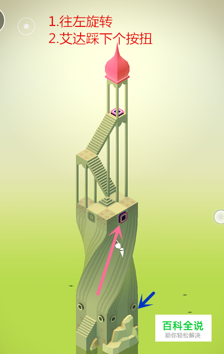 1.艾达踩了按扭后出现旋涡柱子。 2.将上层转盘往右转一个度 3.艾达直接去踩转盘上的按扭