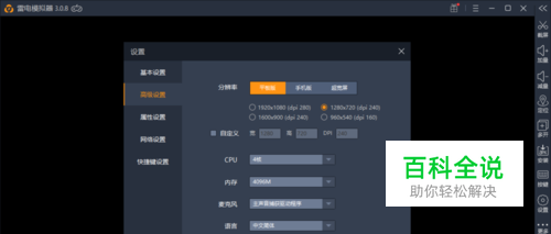 设置安卓模拟器,这里以雷电模拟器的设置为例,模拟器的内存最好在2GB以上,而处理器的核心最好选择至2核以上。