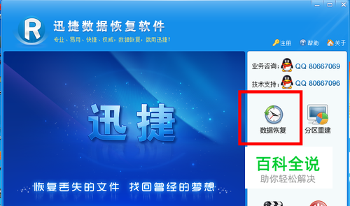 打开软件,数据恢复,分区重建两个选项,U盘数据丢失,在这里选择数据恢复。