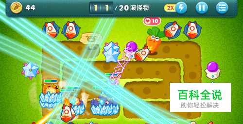 把打怪得来的钱升级炮塔,当大风车上方的冰冻星星升至顶级的时候,攻击它上方的宝箱,出现火箭,并升至顶级,有钱就在怪物出口处再种一个冰冻星星