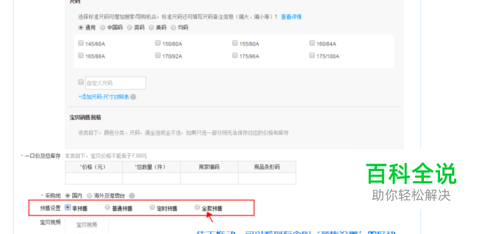 往下拖动,会发现有个叫‘预售设置’的区块的地方,选择全款预售 【淘宝预售发布教程step2】