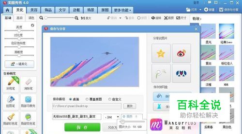 用美图秀秀打开需要修改的图片。鼠标移动到右上角点击保存与分享。