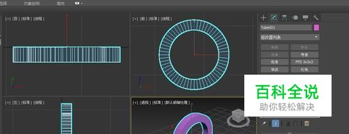 首先打开3dmax,在创建基本体中选择管状体,设置半径1为150mm,半径2为120mm,高度为50mm,分段数均为1,边数为60.