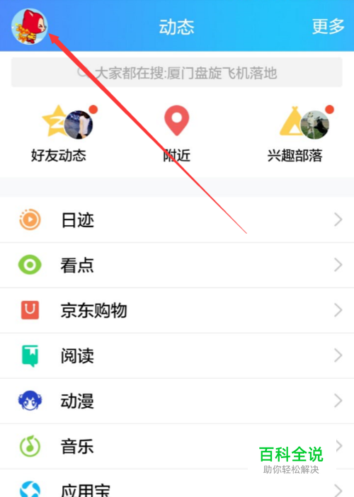 打开手机QQ并登录,然后点击QQ界面左上角的QQ头像,如下图所示。