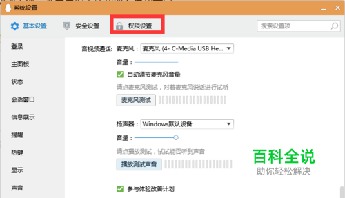 想要不显示所在地和故乡,我们需要在PC端进行设置,首先我们打开客户端,选择下方的设置。