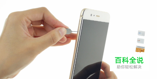 取卡托 在关机状态下,在手机左侧上方找到卡槽,使用随机附送的取卡针垂直插入卡托边上的小孔,按压使卡托弹出。