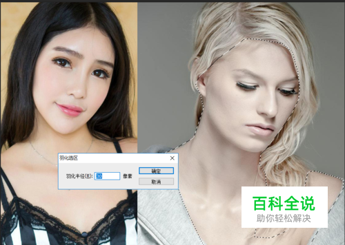 用多边形工具把右侧人物皮肤部分勾起来(创建选区),然后羽化;