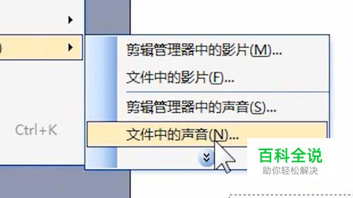 打开PPT,点击工具栏中的“插入”,在影片和声音中选择影片和声音里的“文件中的声音”。
