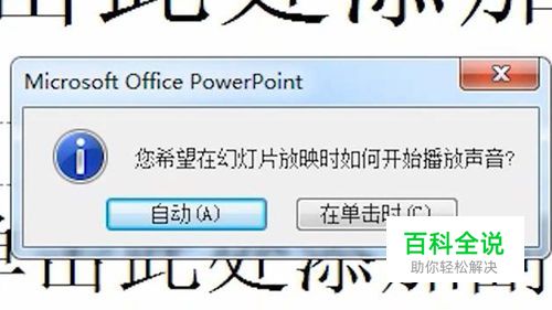弹出一个对话框,询问你想要以什么样的方式来播放音乐,是一打开ppt就自动播放,还是点击“鼠标”时才播放,根据需要选择即可。