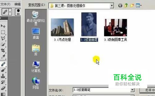 按住alt键。用鼠标在好的区域内点击,选取修补的颜色,然后移到需要修复的位置,点击涂抹就可以了