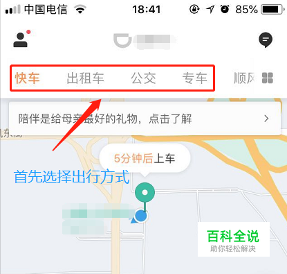 以下就是最新版滴滴出行APP,如果我们想要叫车,那么在首页最上方选择一种交通出行方式,然后在下方手动输入目的地即可;