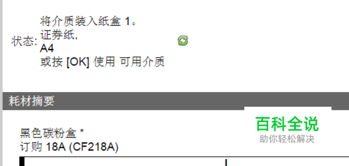 进入首页,查看状态显示“将介质装入纸盒1或按ok”