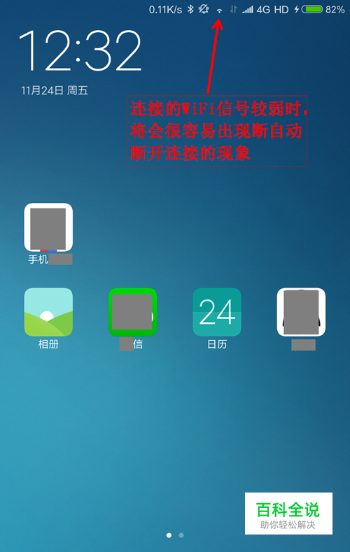 手机上面收到的WiFi信号较弱。 查看手机上面收到的WiFi信号,如果收到的信号较弱,那么很容易出现掉线的情况,此时可以把手机移到与WiFi源较近的地方使用,观察手机上面的WiFi连接情况。
