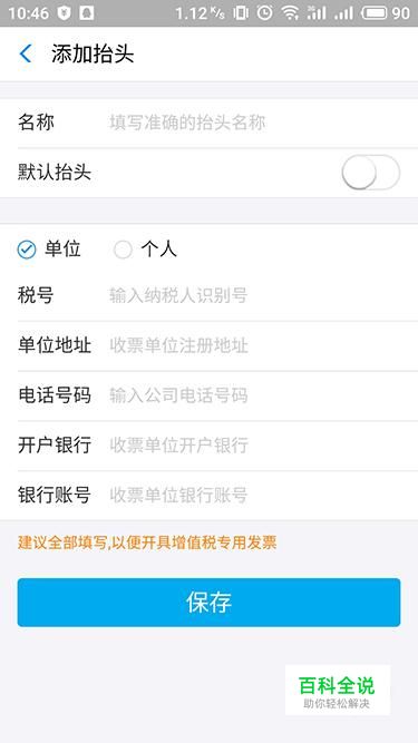 如果想要添加抬头信息的话,点击“新增”,按照系统要求输入信息,点击“保存”就行了。