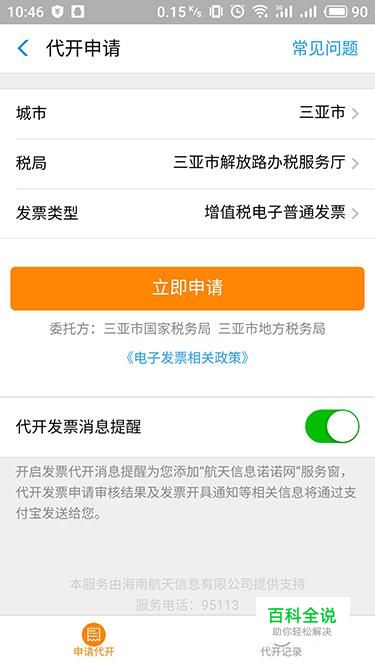 如果想要使用“发票代开”功能的话,先要进行城市和服务商的申请。