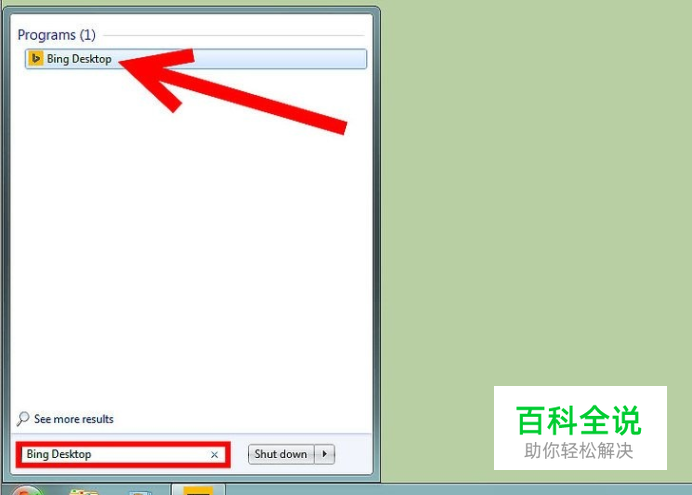 点击,或在开始菜单的搜索栏中搜索“必应桌面”。