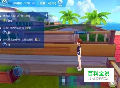 进入休闲区之后,走到图示未知的小草堆上面,如图所示。