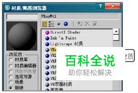 对渲染器的设置。单击“渲染器”选项卡,展开“全局开关”卷展栏,取消选择“默认灯光”厅复选框的勾选,选中“覆盖材质”复选框。单击“覆盖材质”复选框后面的“None"按钮,从打开的“材质/贴图浏览器”对话框中选择VR材质。此时在“全局开关”卷展栏的“覆盖材质”复选框的后面按钮名称将变为所选择的VR材质名称。