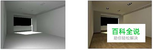 对材质的渲染和最终测试。在“渲染场景”对话框中展开“图像采样(反锯齿)”卷展栏,选中“固定比率”单选框。展开“间接照明(GI)[无名]”卷展栏,选中“开”复选框,将二级反弹的“倍增器”值设置为0.85。展开“光照贴图”卷展栏,在“内建预置”栏中单击“当前预置”下拉列表框,从弹出的下拉列表中选择“非常低”选项,再次单击该下拉列表框,从弹出的F拉列表中选择“自定义”选项。将“最小比率”和“最大比率”值分别设置为-6和-5,选中“显示计算状态”和“显示直接光”复选框。按F9键对摄影机视图进行渲染。取消对“覆盖材质”的勾选,再次按F9键对摄影机试图进行渲染。如右下图所示。