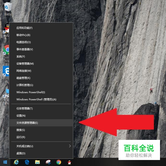 首先右击电脑桌面左下角的开始图标,然后点击进入“文件资源管理器”。