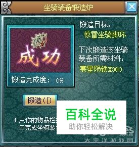 坐骑装备与勋章的获得 想要坐骑装备的玩家朋友可以通过长安城内的青牛处获得。起初的时候,玩家需要消耗一些钱、经验和材料来获得一套铁质的坐骑装备,也可以得到一个灵兽级别的勋章。之后若想要更为高级的坐骑装备以及勋章需要通过锻造的方式。合成方式十分简单,一样是招青年,点击坐骑装备锻造,之后将要锻造的装备拖进锻造界面再点击锻造就可以了,前提是你要有足够的材料,勋章锻造的过程和锻造装备是一样的。锻造装备的材料是寒星陨铁,而勋章是坐骑锻造丹。至于勋章的强化则更为简单,打开坐骑界面-点击坐骑装备-点击要打造的装备,选择镶嵌-将勋章拖进去即可。