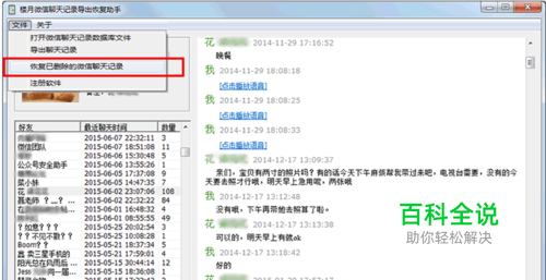 最后再点软件左上角“文件”中的“恢复已删除的微信聊天记录”就能把删除过的微信记录都恢复回来。
