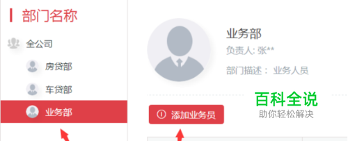 2. 在“业务部”栏里,选择“添加业务员”。