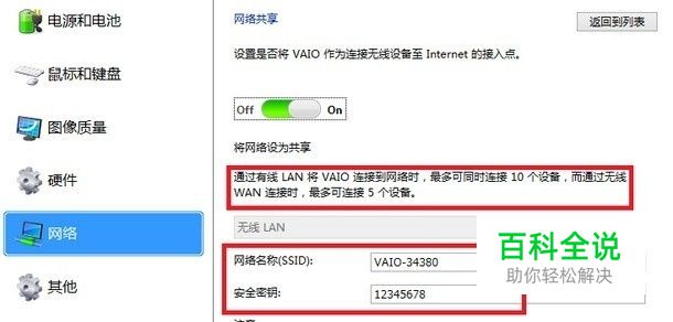 很多使用索尼笔记本的朋友可能不知道索尼某些型号的笔记本是有网络共享功能的,网络共享功能是VAIO个人电脑中新添加的一项人性化功能。当您的个 人电脑已连接到网络中时,可以将电脑的网络流量共享到其他的无线设备上。(手机,电脑等其他一切带无线上网功能的设备),意思是说,我们只要使用了此项功 能,就可以不必另外购买无线路由器了,怎么样方便吧,请看以下步骤。 用户仅需要在电脑上简单操作,即可完成网络分享的设置。具体步骤如下:1.打开VAIO个人电脑上的VAIO Control Center。2.在弹出的VAIO Control Center窗口中选择网络,并滑动窗口右侧的网络共享开关。3.点击详细信息,进入到下一菜单设置时,仅需填入网络名称(即SSID)和安全密钥即可。 注意,在使用网络共享时,有线网络连接到VAIO电脑,可以最多同时连接10个设备,而通过无线连接VAIO电脑,则最多可以连接5个设备。另外,当出现无法连接时,请关闭您电脑上的防火墙功能。1.进入控制面板。2.选择Windows防火墙。3.在窗口左侧点击“打开或关闭Windows防火墙” 4.选择“关闭Windows防火墙(不推荐)”