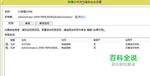 选择应用此文件夹、子文件夹和文件,设置需要的权限,然后单击“确认”按钮。
