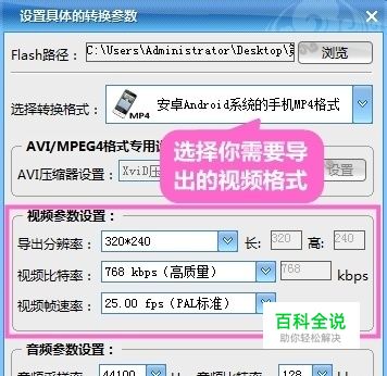 选择需要导出的视频格式。 flash文件导入完成后,我们就会进入到“设置具体的转换参数”界面,我们首先根据自己的移动设备适用的格式选择好导出的视频格式,如果对视频文件质量有特殊要求的朋友可以灵活设置视频文件的质量参数,如果没有特殊要求直接采用默认参数进行导出就行了! 然后,我们点击“确认”按钮即可返回软件的主界面。