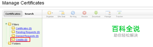 进入SSL管理控制面板后,如果看不到SSL产品,点击右侧的Credits按钮,如下图所示: 再点击上方的Click here按钮,如下图所示: