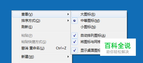 还有的亲觉得这个方法看上去太过简单,体现不出他的技术含量。那小编就教你另外一个“高大上”的方法。在电脑桌面上的空白处,鼠标右击—查看,选择图片的大小。