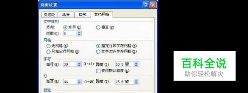 选中“指定行和字符网格”,在“字符”设置中,默认为“每行39”个字符,可以适当减小,例如改为“每行37”个字符。同样,在“行”设置中,默认为“每页44”行,可以适当减小,例如改为“每页42”行。这样,文字的排列就均匀清晰了。