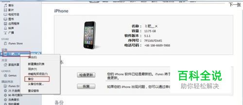 将设备连接电脑打开iTunes--右击鼠标“设备名称”--备份。(等待iTunes备份完成)