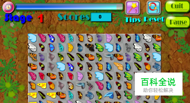 游戏简介 一款非常好玩的蝴蝶连连看小游戏,游戏里很多美丽漂亮的蝴蝶,你需要把两个相同的蝴蝶翅膀连起来,两个翅膀就会组合成一只蝴蝶飞走。如果旁边有草丛就不能连通哦。 游戏目标: 将相同的蝴蝶连线消除 如何开始: 游戏加载完成后点击“开始游戏” 操作指南: 鼠标操作选择蝴蝶