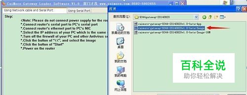 打开升级工具,先选择对应数据线的COM口(波特率为115200),IP选择为你本机电脑的IP, 升级文件选择如下图所示的文件后打开。