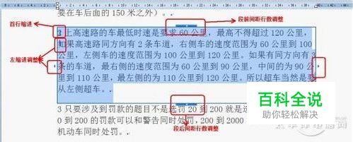 二、常见的段落调整 单击“段落布局”图标后,段落被选中同时围以矩形框。一般的段落调整靠它就可以完成。 首行缩进及左、右缩进:将鼠标移至矩形框左上角首行的短竖线,鼠标指针变成双向箭头形式。拖动鼠标就可以调整首行缩进的字符数。其下方的短竖线是用来调整左缩进字符数的。移动鼠标至左右两侧的小三角形处,拖动矩形框左右两条竖线,可以调整左、右缩进字符数。 段前距、段后距:上下两条线中间也有调整柄。调整上线为段前间距的行数,而拖动下方横线则可调整段后间距行数。如图2所示