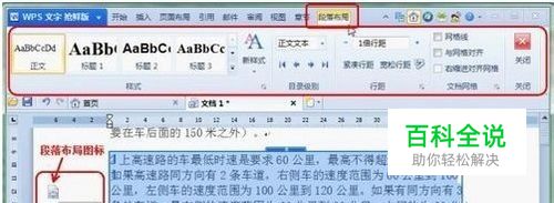 一、段落布局功能入口 将鼠标定位于段落的任意位置,在其左侧可以看到“段落布局”图标。点击它,可以看到,该段落处于被选中的状态。此时,在功能区可以看到新出现的“段落布局”选项卡,如图1所示