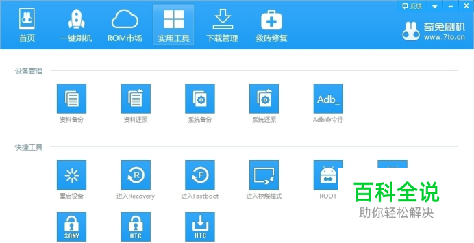 联想K900 K910联通移动版本 1.首先我们要下载一个奇兔刷机软件 2.连接手机USB,打开USB调试,选择一键刷机 3.此处可以选择ROM系统刷机包 4.市场中有各种各样,丰富的ROM刷机包资源 5.下一步等待自动刷机完成,期间无须其他操作 6.出现下图就恭喜你刷机成功了,就如此简单 7.另外奇兔刷机软件还提供了各种实用功能,让你以后遇上什么问题都能轻松搞定