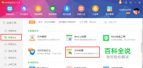 点击左侧菜单栏-数据安全,然后点击文件恢复,即可打开文件恢复工具