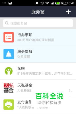 打开支付宝钱包客户端,选择服务窗功能,在服务窗顶部输入花呗。