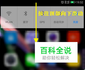 另外在通知栏处也可以打开设置界面。方法是先按住屏幕顶部通知栏处,向下滑动,打开通知栏。