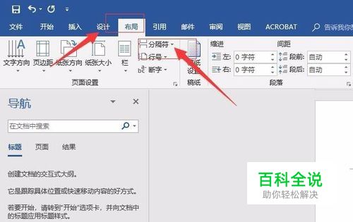 接着,在菜单栏中找到“页面布局”下的“分隔符”。如图: