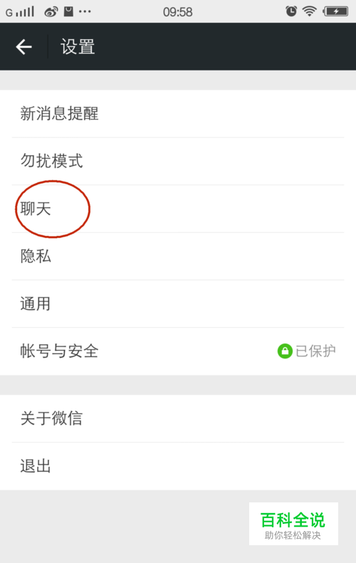 点击设置进入到设置窗口以后,在设置窗口上面再点击聊天,进入到聊天窗口,如图所示: