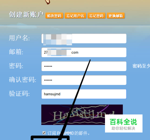 填写注册的信息和验证码(用户名不能为中文) ,点击下方的【注册】